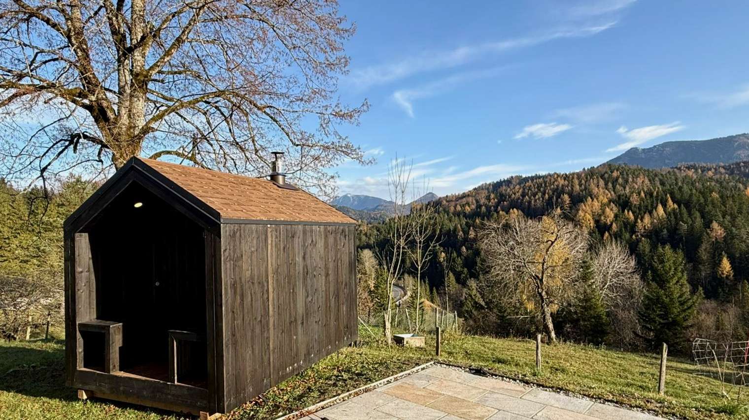 Diese Barn Nordic Gartensauna mit Holzschindeldach steht an einem traumhaften Platz im niederösterreichischen Voralpenland. Durch das große Panoramafenster kann man die Aussicht wunderbar genießen, während man auf der Bergseite fein reingehen kann. Auf der Veranda vor dem Eingang kann man seinen Bademantel aufhängen und die Schuhe im trockenen abstellen.